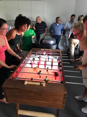 But since it's not all about work, we wanted to create a fun project, too. We decided to create a Football Table. Our design, our work, our pride as a team, is now sitting in our new office, offering a break whenever needed.