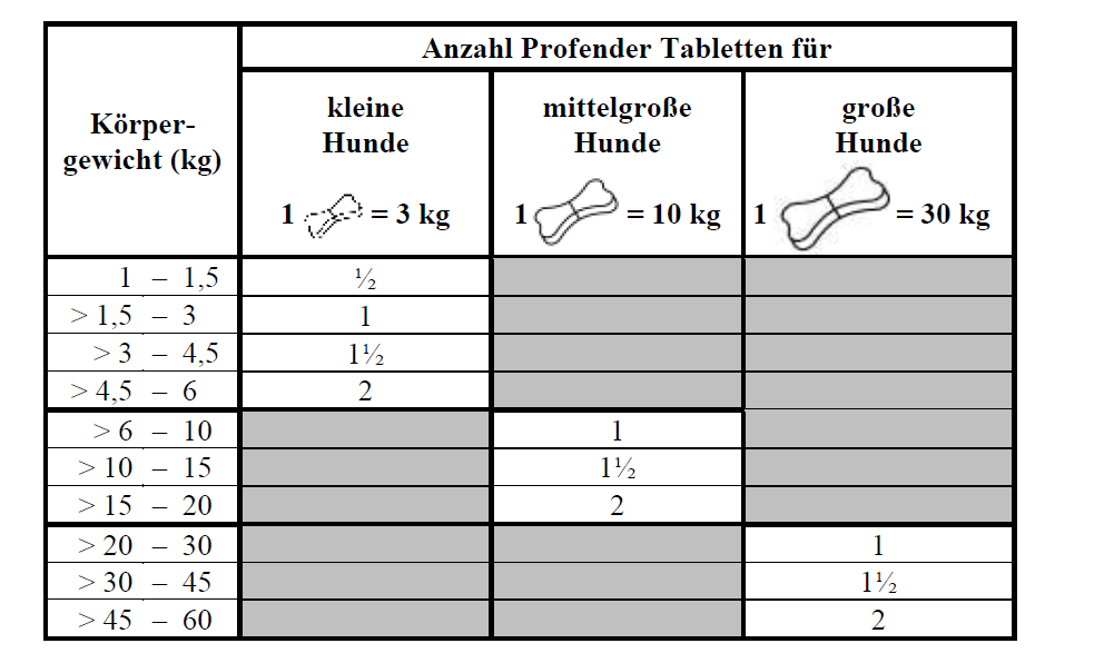 | Profender Tabletten für große Hunde | 30 mg | 150 mg |